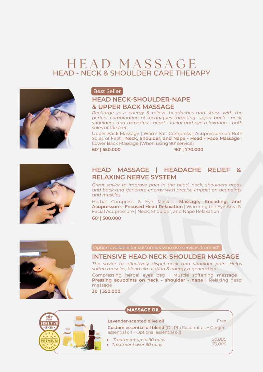 Vietnamese treatment massage spa with “finger pressure”. We have specialist with 30 years of experience and nice decorated service room.